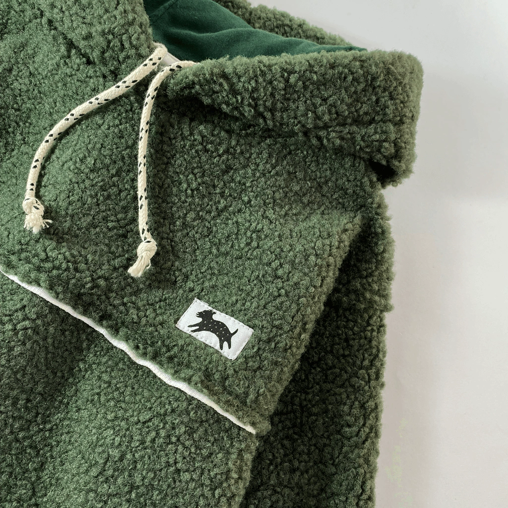 Tené en cuenta que la moldería de este Buzo es más pequeña. Te recomendamos elegir un talle más del habitual (Ejemplo: si siempre compras T6, te recomendamos que lleves T8 de este Buzo). Buzo UNISEX de corderito con capucha, calce relajado y hombro caído. Delantero con recorte y vivo a contratono. Cintura y puños con elástico interno y bolsillos en los laterales. Capucha forrada en jersey, con cordón trenzado para ajustar. Etiqueta del perrito en el delantero.
