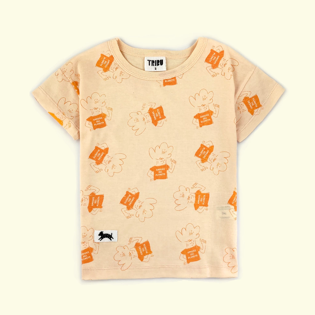 Remera UNISEX. Calce relajado. Escote redondo, mangas cortas y hombro caído. Hecha en jersey peinado súper suave y fresco, estampa FULL en serigrafía a 1 color con tinta al agua. Etiqueta perrito aplicada en delantero.